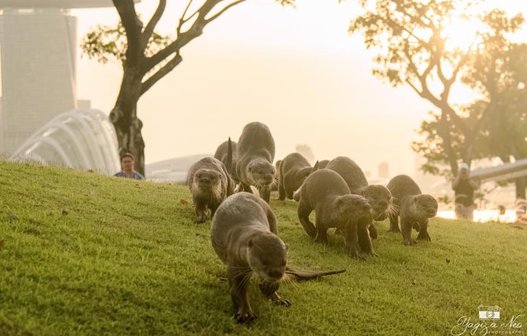 其中江獺家族會出沒的熱點也不少,像是碧山、濱海灣花園等等,而喜愛江獺的粉絲們也暱稱這兩個地點的家族為「碧山10」與「濱海灣5」。
