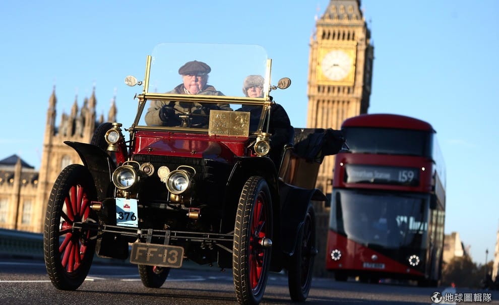 在倫敦街頭,開著 1904年經典車款的民眾準備前往布萊頓(Brighton),完成一年一度的經典復古車大賽。
