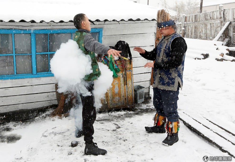 一名薩滿教巫師(右)嘴裡念念有詞,專心地為前方的顧客驅魔。這裡是俄羅斯圖瓦共和國首府克孜勒(Kyzyl),身為遊牧民族的圖瓦人(Tuvans)相信靈性的力量,他們也落實在日常生活中。