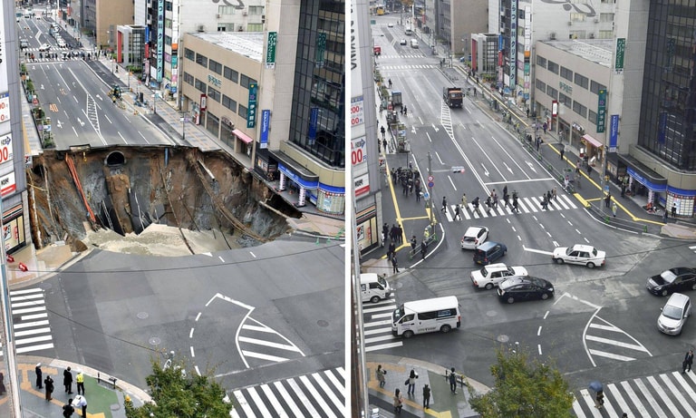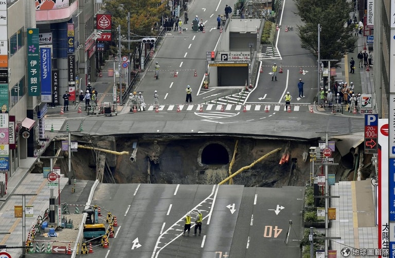 上周二清晨五點十五分,正當大家仍在睡夢中時,日本福岡博多車站附近街道「轟」地一聲破了個大洞,嚴重影響交通、電力、銀行等系統,當局也立刻撤離鄰近居民,害怕再有道路崩塌。