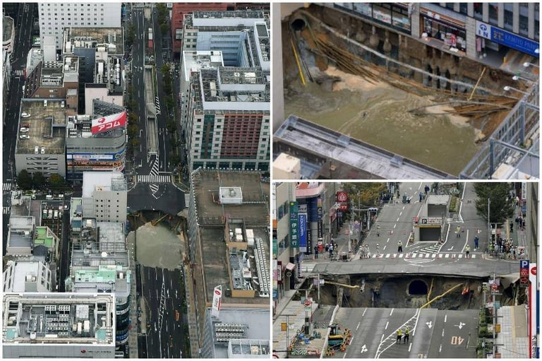 04 Huge sinkhole forms near Fukuoka train station