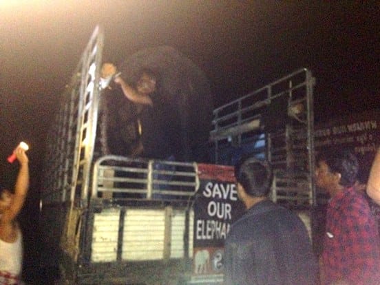 卡車終於到了!庇護所人員打開卡車柵門和牠的腳鏈。尼文似乎急著拜訪老朋友,所以牠的看守人讓牠如願。取自:BLES臉書