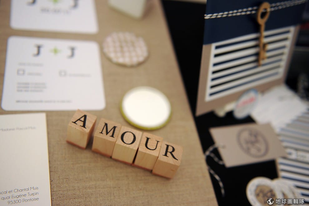 gettyimages同志婚禮展場內的桌上,有小木頭排列出「愛」的字樣。Antoine Antoniol/Getty Images