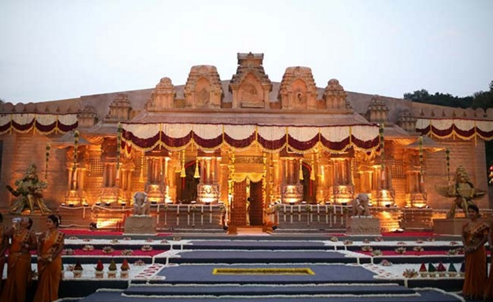 婚禮將在雄偉的邦加羅爾宮殿舉行,工作人員好幾個月前就開始布置,報導指出有八名寶萊塢導演到場打造宛如古印度廟宇的場景,更不用提婚禮當天安排的表演、裝飾著花朵的大象和巨大氣球。