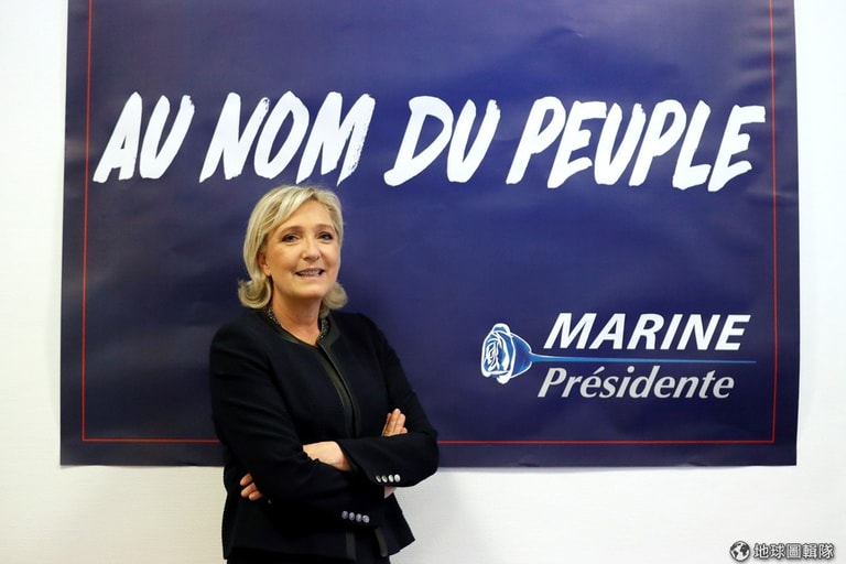 16號這天,法國右翼政黨民族陣線(National Front)黨魁兼總統候選人勒龐(Marine Le Pen)為競選總部揭幕,他站在寫有「為人民」字樣的海報前留影。