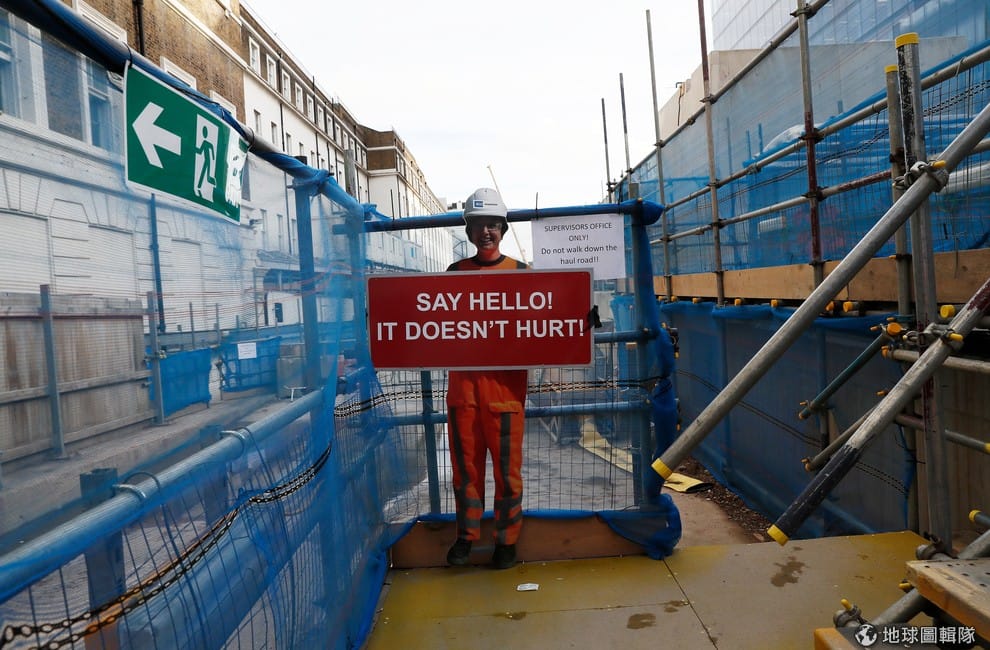 在倫敦帕丁頓(Paddington),一名鐵路工人舉起寫有「道聲你好不礙事」字樣的牌子,鼓勵人們互相問好。他所在的地方是正在興建的跨鐵路車站(Crossrail station),這項工程是全歐洲最大的營建工程,利用深埋在倫敦市中心的隧道讓住在外圍區域的人都能到市中心。