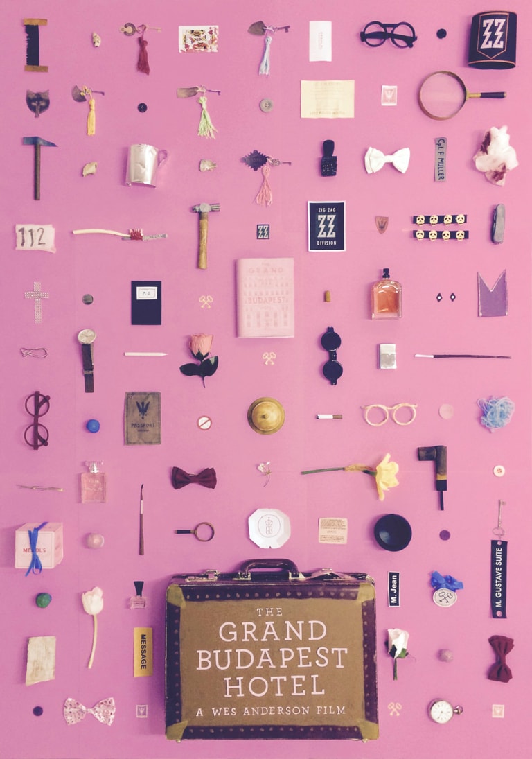 最後,波頓會選好符合電影氛圍的背景色,並按照幾何對稱的方式把道具排列在海報上,讓代表主人公的道具們能在海報中互相對話。