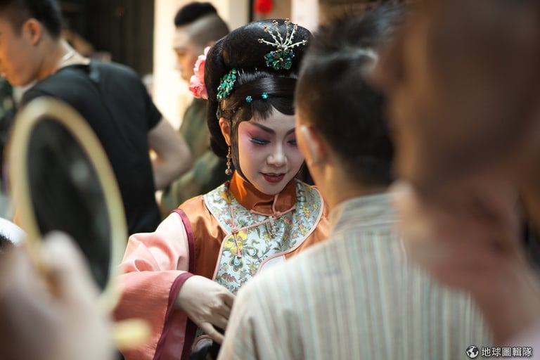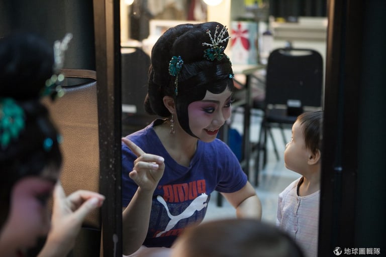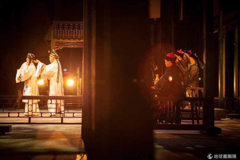 好戲登場,演員在台上唱著動聽的曲調,曲折的劇情吸引觀眾一直看下去,捨不得眨眼。