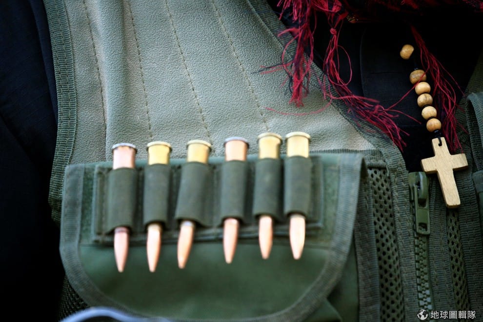 摩蘇爾城(Mosul)東南方,基督教戰士組織Kataeb Babylon的成員穿上裝有成排子彈的背心,準備與伊斯蘭國(IS)作戰。