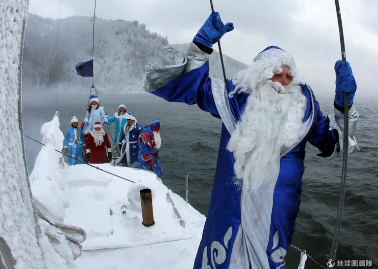 遊艇俱樂部「船長」(Skipper)的成員打扮成「冰霜之父」(Ded Moroz,即俄國的聖誕老人),與他的孫女「雪之女士」(Snow Maiden)在葉尼塞河(Yenisei River)的河面上航行,象徵著航海季節的結束,在他們航行的當下,外頭可是攝氏負 21度的低溫呢!