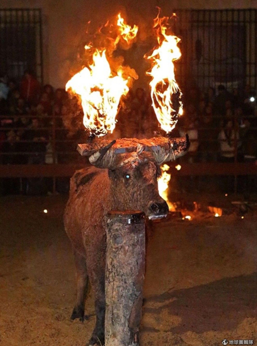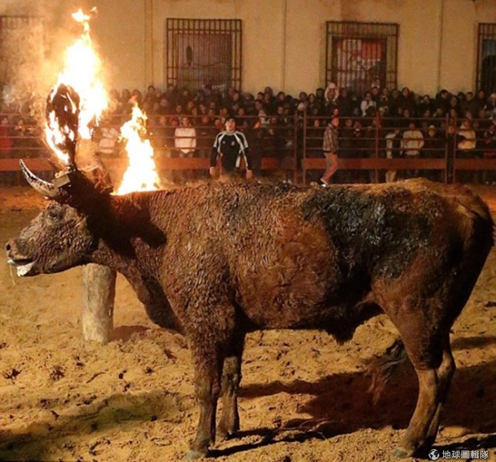 繼續閱讀牛角遭點燃的公牛,下場是被帶到場外屠宰,而協助壓制公牛的民眾則可以分到牛肉,獎勵他們與火燒活牛對抗的「勇氣」。