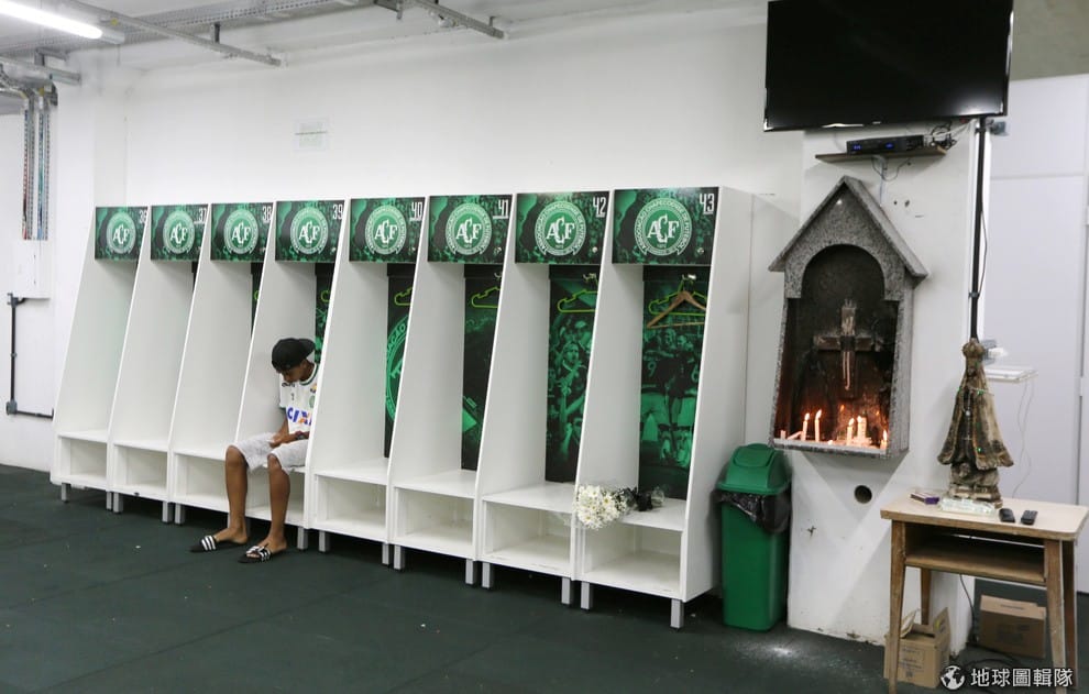 他們原定前往哥倫比亞比賽,這起悲劇也讓整個足球界心碎。圖中沒有和球隊一起前往哥倫比亞的隊員,待在球隊更衣間為墜機事件默哀。
