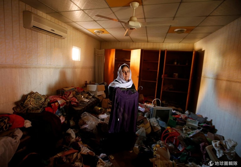 在庫德族戰士奪回伊斯蘭國(IS)佔領的巴夏卡鎮(Bashiqa)後,一名庫德族女子返回她的家裡檢查狀況。