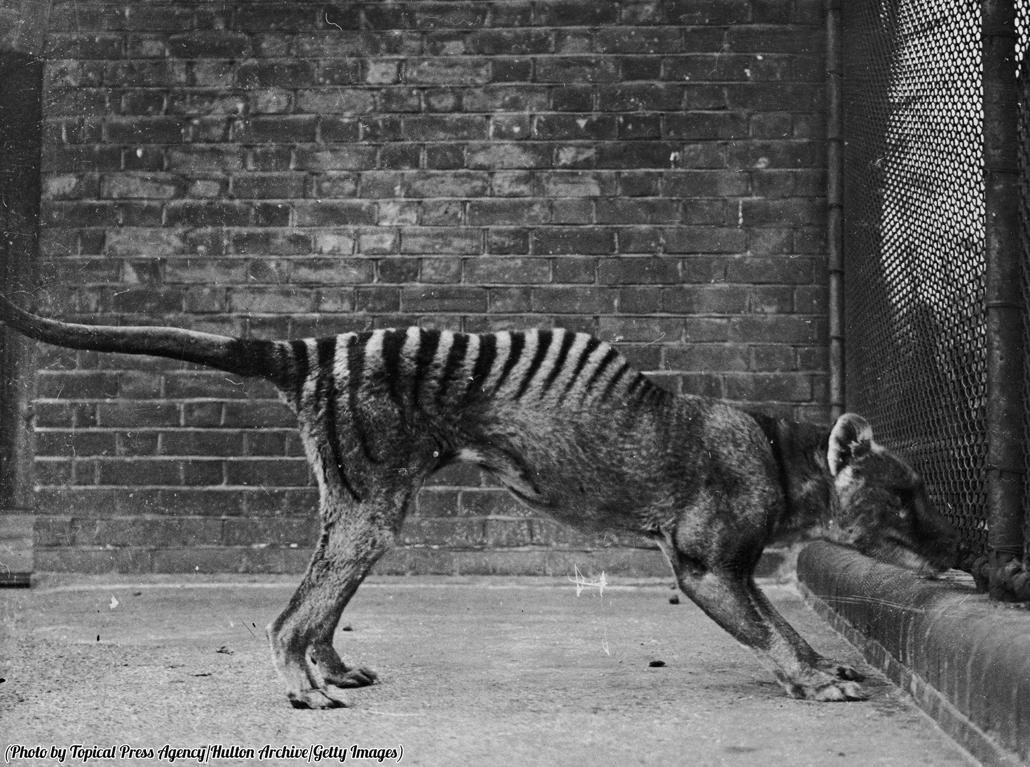 圖為 1930年一隻被圈養在動物園中的袋狼,目前最後一隻圈養袋狼已經在 1936年過世。