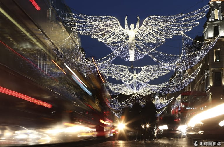 在熙來攘往的倫敦攝政街上,璀璨的聖誕燈飾讓人目不暇給,街頭聖誕氣氛也越來越濃厚。