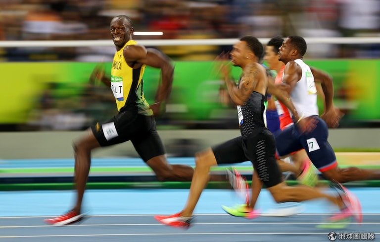 當波爾特(Usain Bolt)準備跑 100公尺半決賽時,我決定用慢快門(1/50秒)記錄這場比賽。就在波爾特跑步經過我的位子的瞬間,他向左看,露出了自信的笑容,當時我第一個想法是:「希望我沒有拍糊這張照片。」