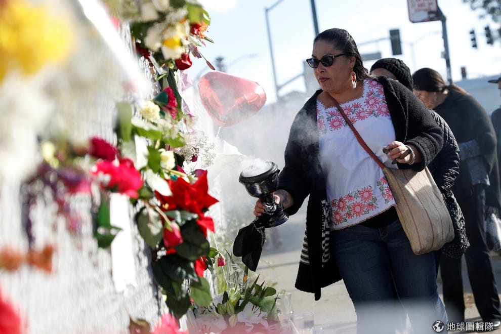 一名女子拿著薰香,悼念在加州奧克蘭(Oakland)倉庫大火中喪生的罹難者,目前死者已達 33人。