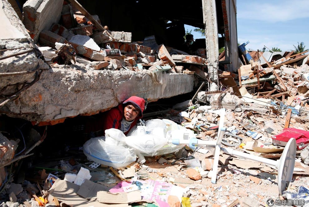 一名男子鑽進被地震破壞的斷垣殘壁內,搶救一台台電風扇。8號這天,印尼蘇門答臘島亞齊省(Aceh)發生芮氏規模 6.5大地震,目前至少造成 97人死亡,超過 600人受傷。