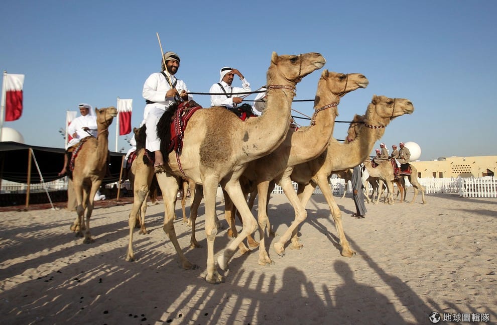 在卡達國慶日前夕,一系列的慶祝活動早已開始,民眾騎著駱駝遊行,場面壯觀有趣。