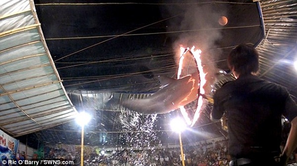 《每日郵報》的這則報導,源自以「血色海灣」聞名的導演瑞克‧歐貝瑞(Ric O'Barry)的海豚計畫(Dolphin Project),並由瑞克的兒子林孔(Lincoln O'Barry)受訪。林孔表示,海豚跳火圈的表演非常野蠻,可以說是上一世紀的殘餘物。