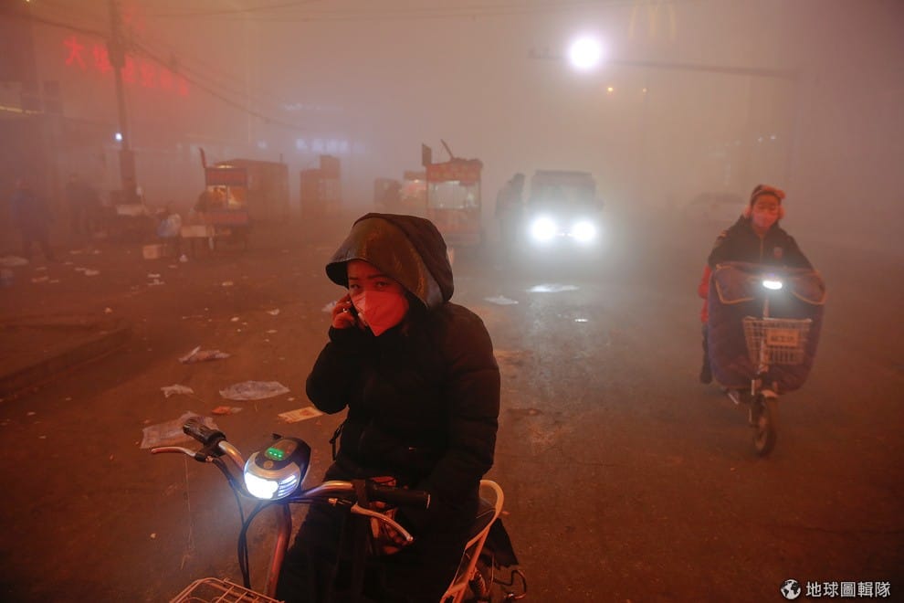 中國正受霧霾所侵擾,人們只能在霧濛濛的馬路上行進。這是今年中國北部碰到最嚴重的霧霾,首都北京也首次在 16號發布紅色預警,預計要到 22號,中國的空氣狀況才會逐漸好轉。