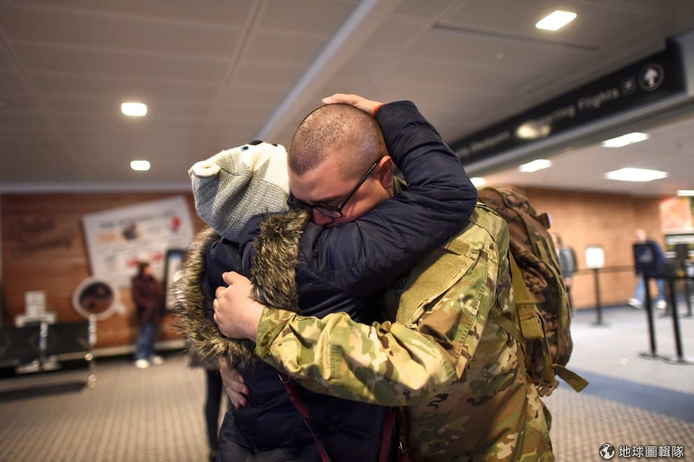 24歲的埃斯皮納爾(Luis Espinal)剛從美軍營地錫爾堡(Fort Sill)受訓歸來,並與他的母親相擁。