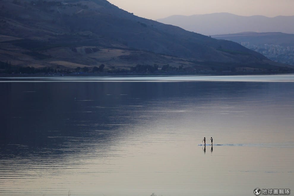 兩人站在立槳(Stand Up Paddle)上滑行。根據《維基百科》,所謂立槳(又稱槳板運動),是由大型衝浪板加上一支高於身高的單槳組成,通常會適用在各式各樣的水上活動。