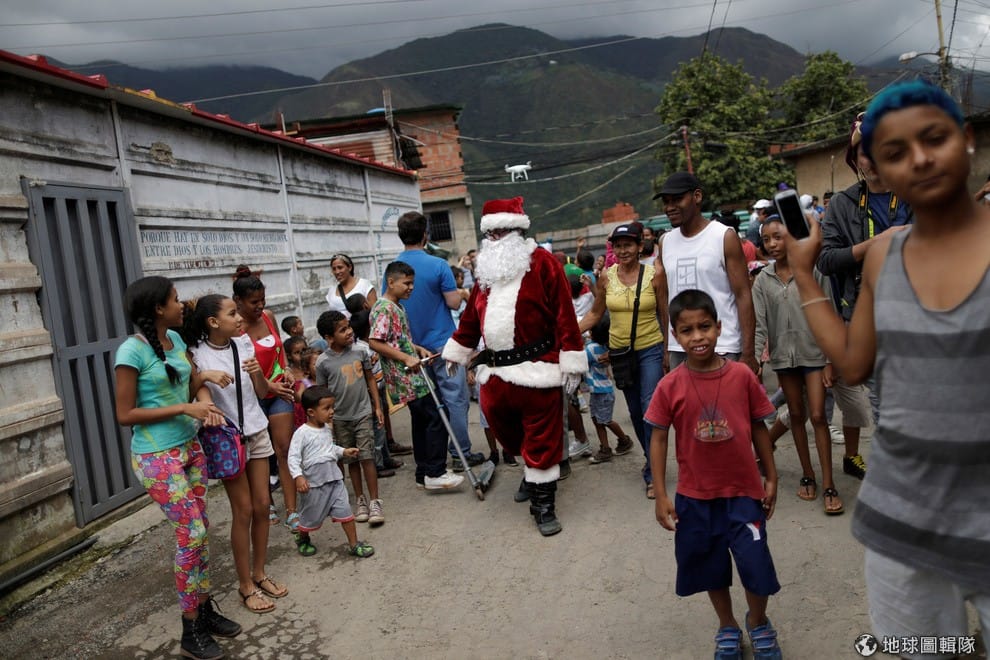 聖誕老人來到了委內瑞拉的貧民窟探訪小孩子。