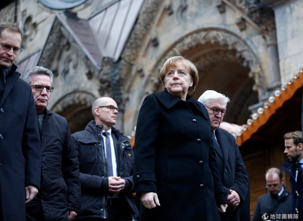 德國總理梅克爾(Angela Merkel)前往遭到卡車蓄意衝撞的聖誕市集瞭解狀況。