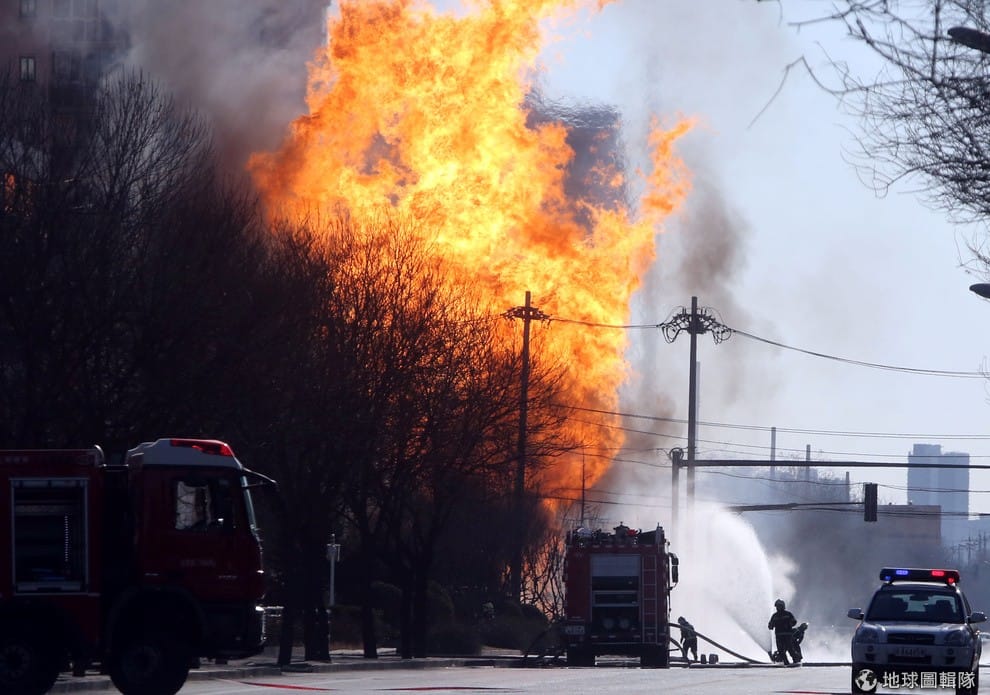 23號,北京天然瓦斯管發生油管爆炸,消防隊正忙著撲滅大火。