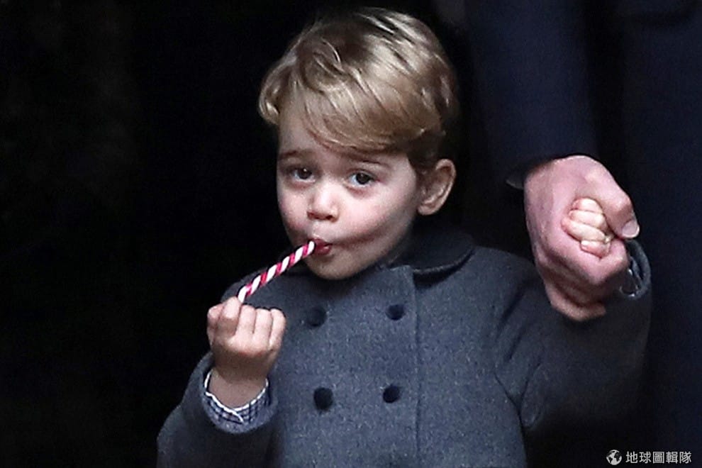 劍橋喬治王子(Prince George of Cambridge),威廉王子(Prince William)與凱特王子妃(Catherine)的長子,正在吃棒棒糖。