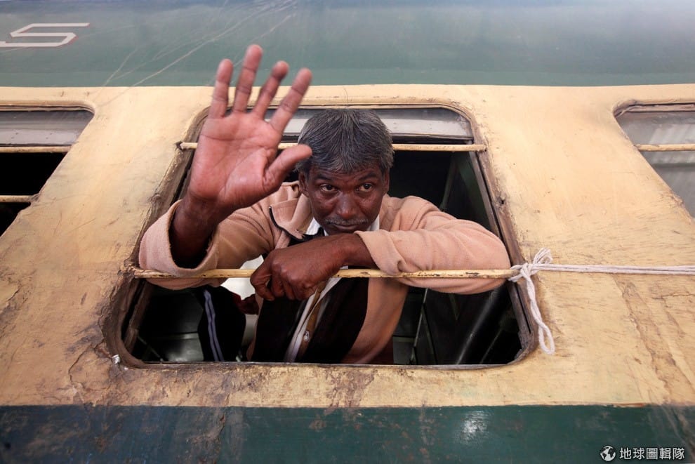 一名漁夫從火車探出頭來打招呼。25號,巴基斯坦政府宣布釋放 200名進入巴基斯坦水域捕魚的漁夫,並協助將他們送回印度。
