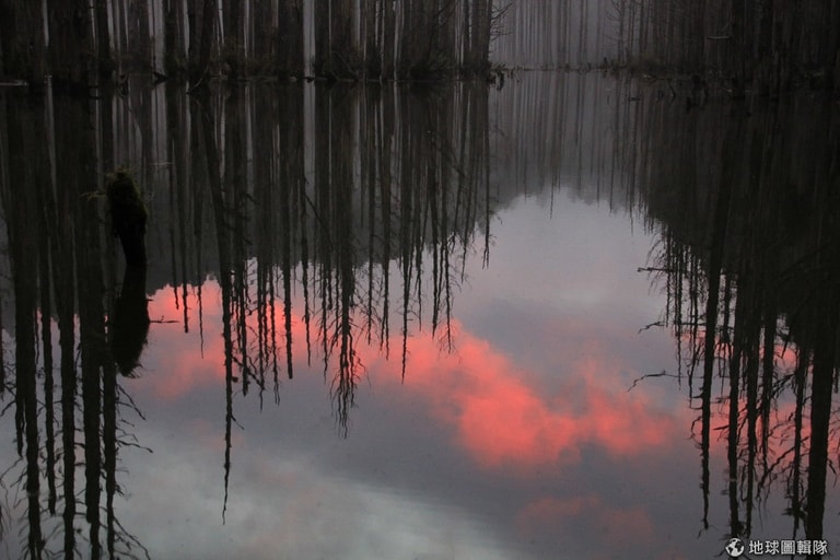 水漾森林就位在南投縣杉林溪附近,1999年921大地震的影響下,這裡成了一座獨特的堰塞湖,雖然鄰近的柳杉林因長期泡水枯死,但枯木的姿態反而在湖水倒映下,呈現出另種凋零之美,也因此有了「水漾森林」這夢幻的名稱。