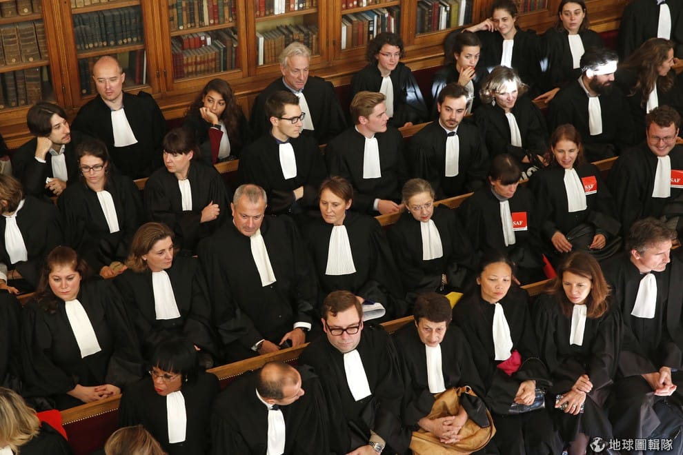 圖為 2015年,一群律師出席巴黎司法宮的情景。當時在審理法庭上,法官不斷質疑索瓦吉為什麼會隱忍家暴這麼久才有回應,也因此判定索瓦吉的行為不構成正當防衛。