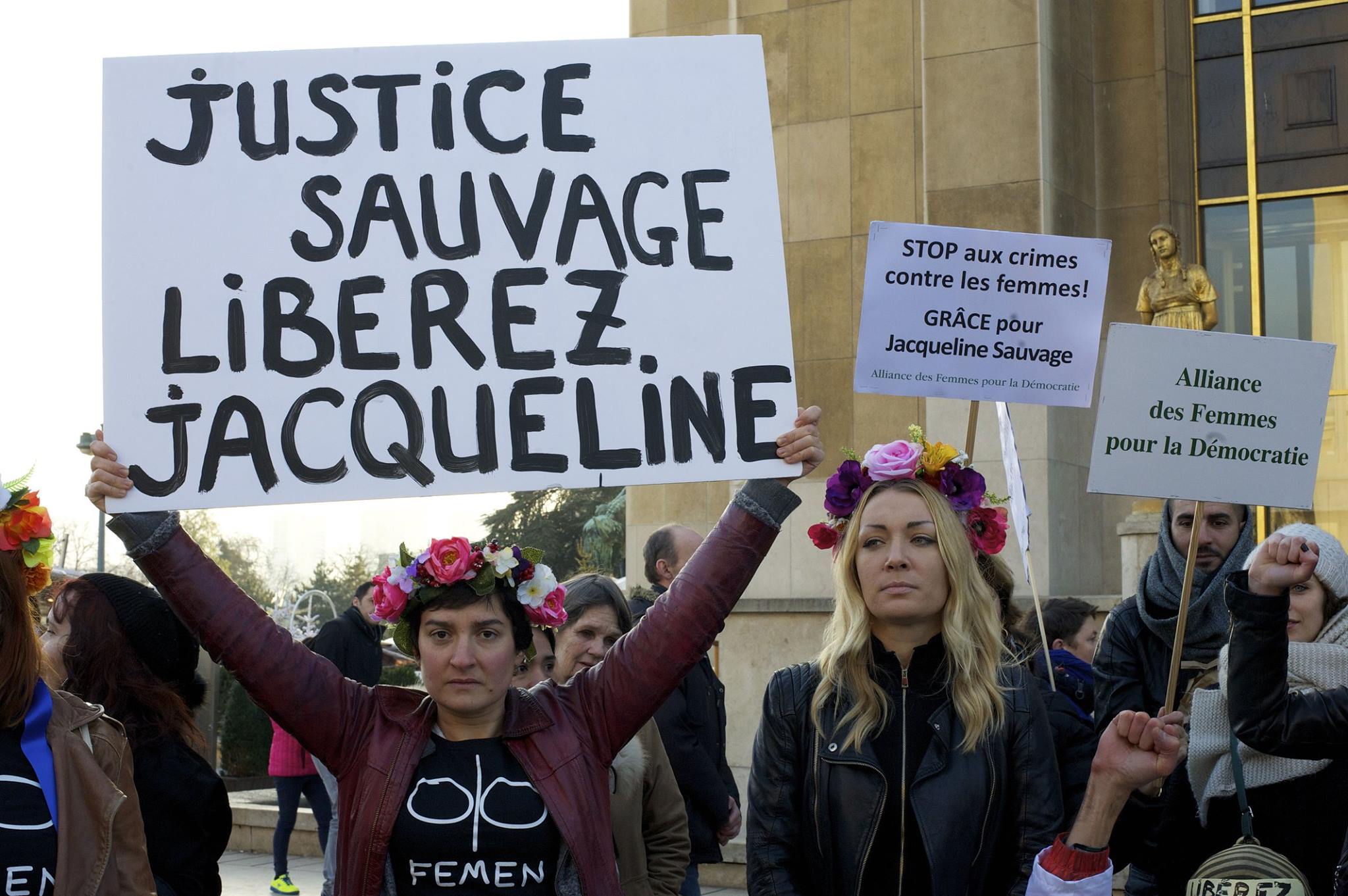 圖為聲援索瓦吉的民眾。《紐約時報》相信,索瓦吉事件多少也影響了其他類似的案件,像是59歲的黛茉(Bernadette Dimet)在 2012年殺了家暴 40年的丈夫後,僅被判處 5年緩刑。