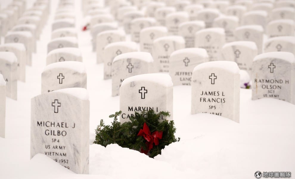 去年聖誕節前夕,美國發起「花環橫跨美國」的組織,集合了志工到國家軍人墓園,並在他們的墳前掛上聖誕花環。