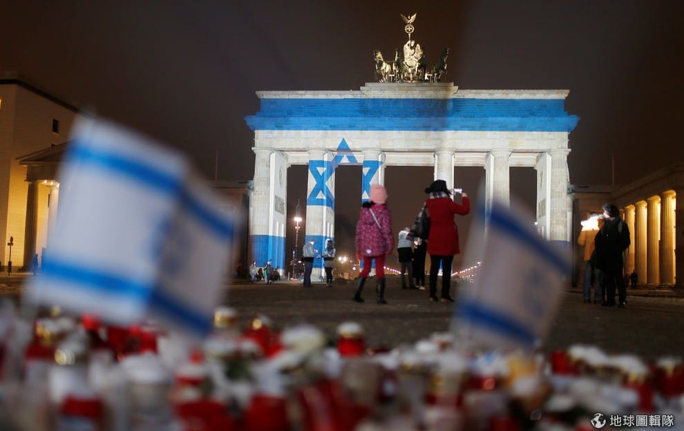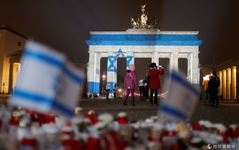 德國柏林著名地標布蘭登堡門被投影上以色列國旗,當局藉此悼念在以色列卡車衝撞事故中喪命的受害者。近日,一名巴勒斯坦男子開著卡車衝撞以色列人群聚的區域,造成多人死亡和受傷,兩國難解的愛恨情仇再次浮上檯面。