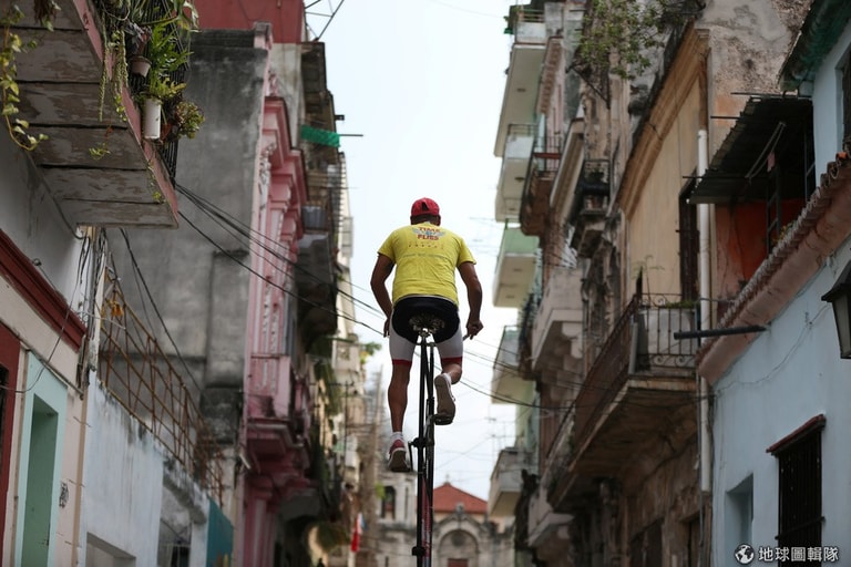 今年 52歲的葛羅拉(Felix Guirola)騎著自製的腳踏車在首都哈瓦那(Havana)街頭閒晃。