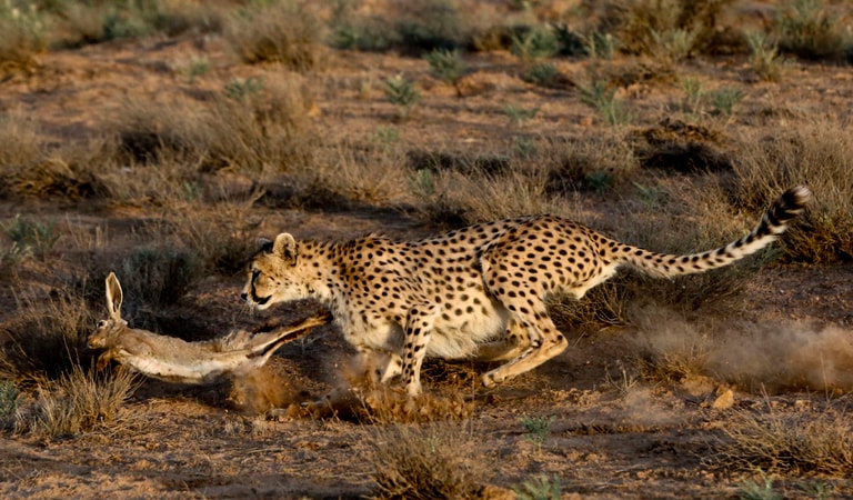 研究獵豹的學者Michael Scantlebury在《 Science 》期刊中發表:「我們的研究顯示,現在獵豹主要的能量都花費在長途跋涉,而不是追捕獵物.….想像日復一日,走在炙熱的沙地上沒有水喝,你大概就可感覺這些大貓每天面對的挑戰了...這些挑戰主要是人類架設的圍欄,阻擋牠們原本狩獵的道路,逼得獵豹得走上更多距離,花上更多精力才能看到獵物。」
