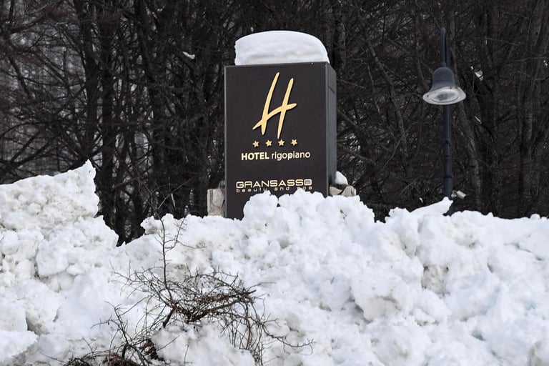 當時在地震過後,這家靠近大薩索山(Gran Sasso)的四星級度假村的旅客聚集在大廳,等待地震後的撤離行動,然而,在地震不久後,地震引起的雪崩完全把度假村埋沒,僅有兩名旅客因為待在建物外逃過一劫。