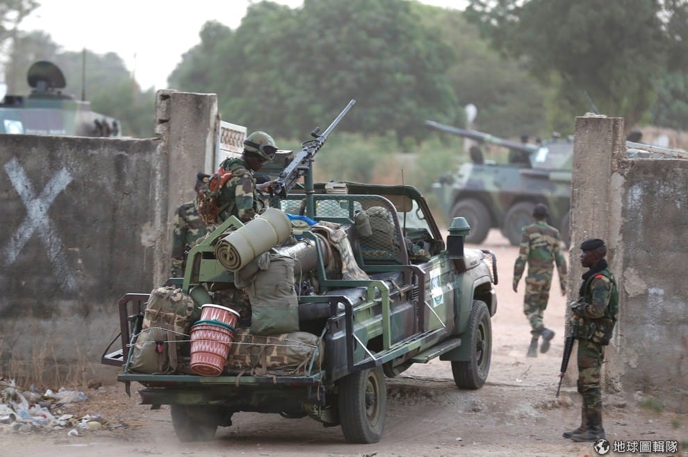圖片拍到西非國家經濟共同體(Ecowas)的軍隊正在甘比亞的邊界巡邏。