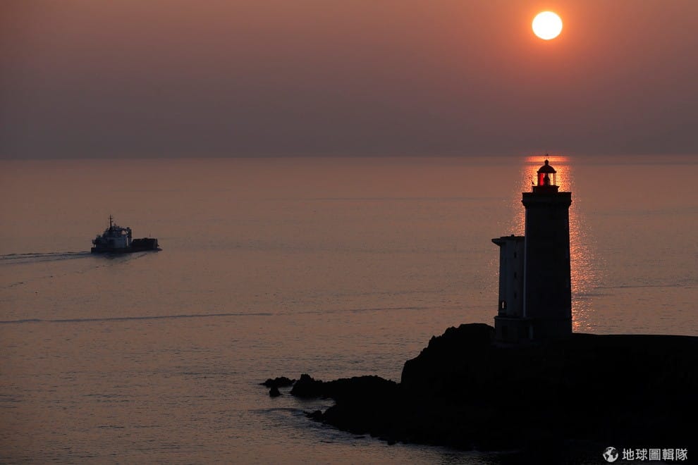 法國西北方的城鎮普盧扎內(Plouzane),一艘小船正不畏冷空氣的航向大西洋。