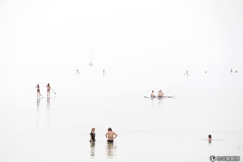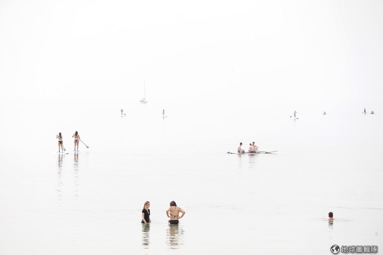 一群海灘客沈潛在地中海中。