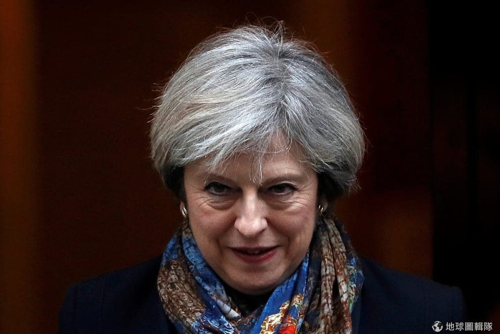 照片拍到英國首相梅伊(Theresa May)從首相辦公室「唐寧街10號」走出來。