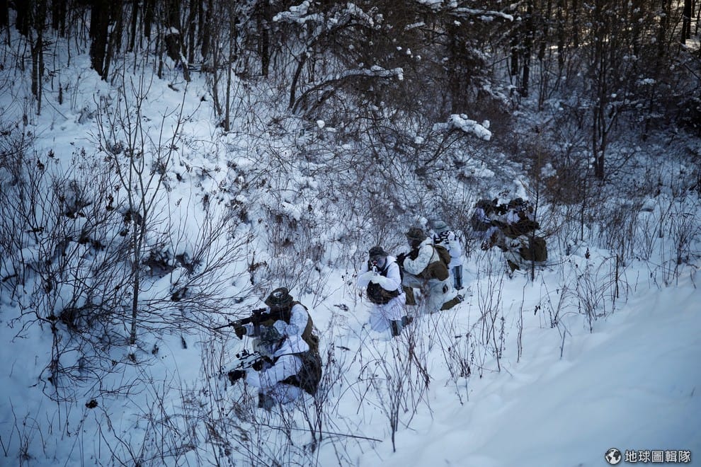 南韓與美國的海陸戰隊正在平昌進行冬季軍事訓練。