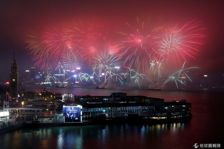 在觀光客必遊的維多利亞港,美麗的煙火一朵朵開在海上,讓人捨不得移開眼睛。