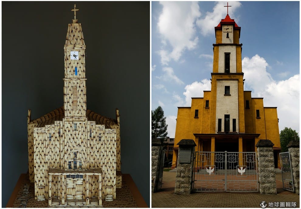 路透社圖為當地聖靈教堂和火柴複製作品的對照圖,神韻是否有些相似呢?