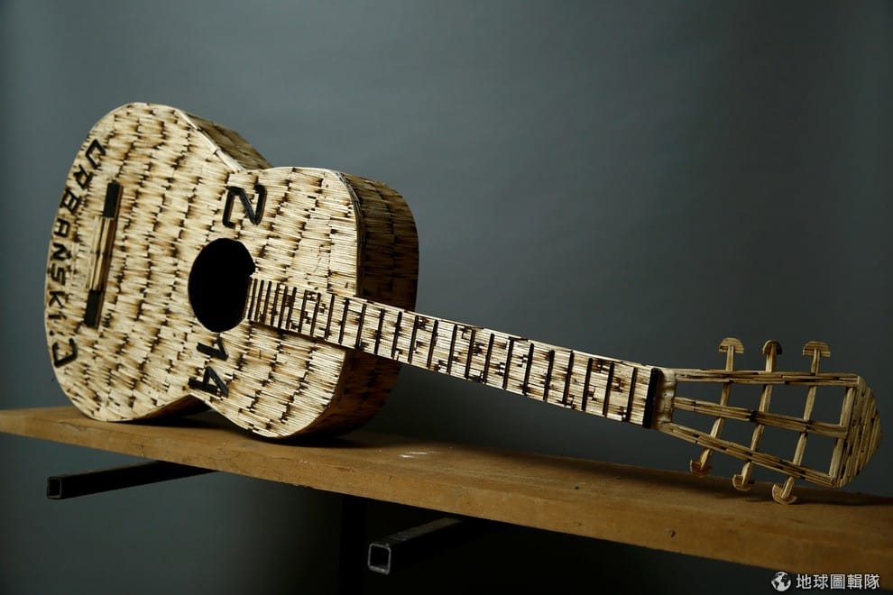 圖為用火柴製成的吉他複製品,看起來也有模有樣。