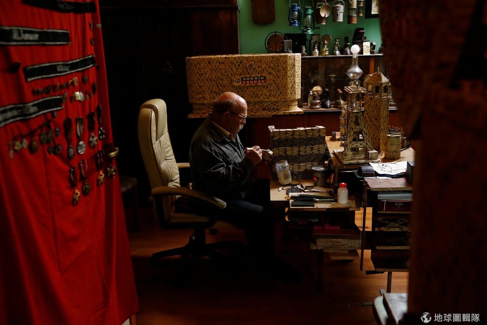 路透社長年的火柴藝術創作,讓烏爾班斯基的屋子堆滿了成袋的空火柴盒。