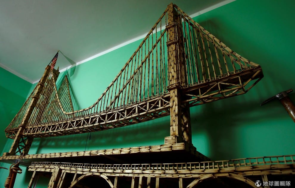 路透社圖為舊金山金門大橋的火柴複製品,就連連接大橋的鋼索都是用火柴擬真而成。